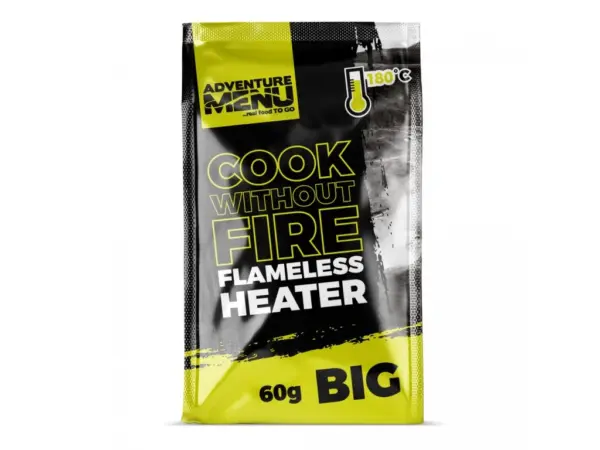 Flameless Heater 60 g er et flammefrit opvarmningssystem, der aktiveres ved tilsætning af vand og genererer varme via en kemisk reaktion. Løsningen gør det muligt at opvarme færdigretter og rationer direkte i deres emballage – uden behov for kogegrej, brændstof eller elektricitet.
