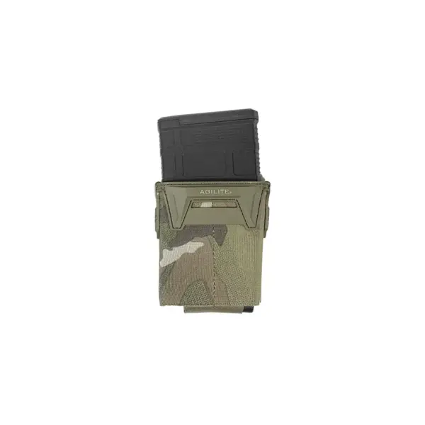 Pincer™ Single er bygget til professionel brug hvor hurtig genindføring og lavt profil betyder noget. Den kombinerer en elastic-krop med patent-pending polymer magwells, der leder magasinet problemfrit ind i lommen uden hak eller støj — hvilket gør genindeksering med én hånd både mulig og pålidelig. Bagpå er dobbelt-spaced laser-cut MOLLE (Squadron mil-spec laminate), så pouches kan monteres på både battle belts og plate carriers. Indvendig er der loop-felt, så Agilite Jump Retention-tabs kan monteres hvis enhedsregler kræver ekstra fastholdelse; samtidig understøttes Agilite AG™ polymer pull-tab teknologi for hurtig adgang selv med retention installeret. Penceren er meget let og kompakt, ‘one-size-fits-all’ for .308-klassen.