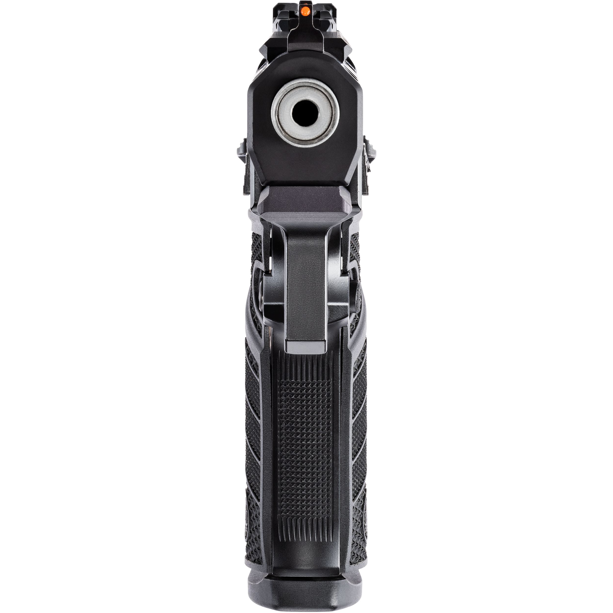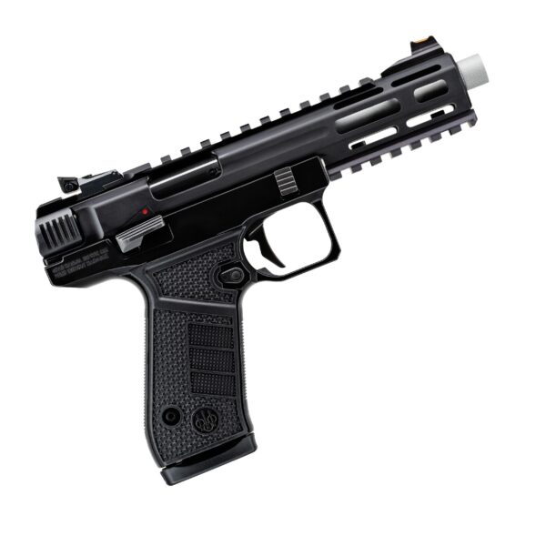 Det, der gør den interessant, er netop kombinationen af træningsværdi og moderne features. Du får ambidextrous betjening, store boltflader, semi-flat-faced trigger og udskiftelige grebspaneler, så pistolen er let at arbejde med for både nye og mere erfarne skytter. Samtidig kommer den med justerbare fiberoptiske sigtemidler og en 1913 Picatinny-skinne, så den er klar til rødpunkt direkte fra start.