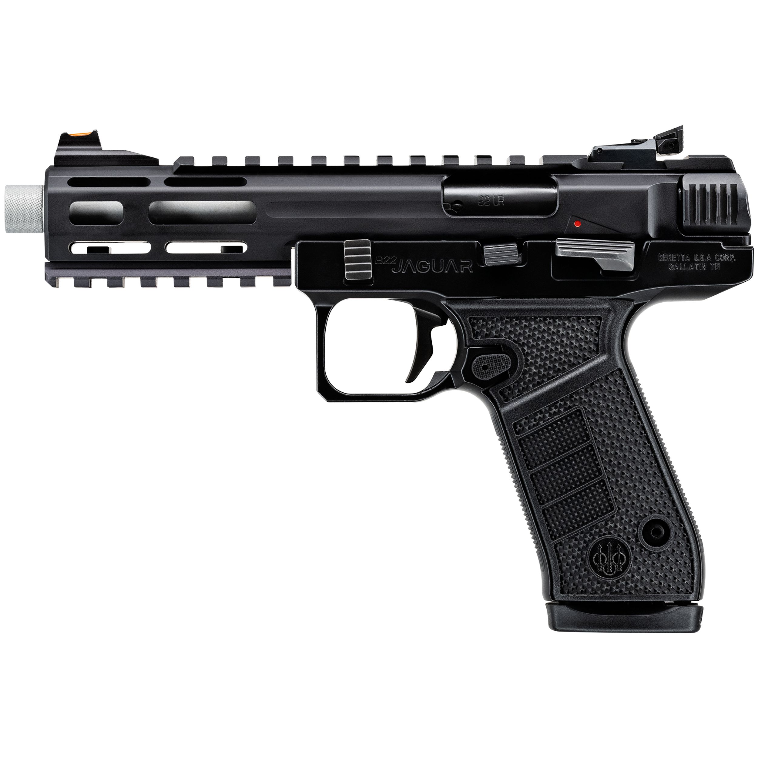 B22 Jaguar Tac Metal er Berettas bud på en moderne .22 LR-pistol, der ikke bare skal være billig at skyde med, men også give en platform der faktisk er værd at træne med. Den er bygget omkring et modulært chassis-system, så den er let at skille ad uden værktøj, let at rengøre og let at tilpasse efter behov. Beretta fremhæver selv, at du kan arbejde med både grip frame, upper, fire control og grebspaneler, hvilket gør den mere fleksibel end mange klassiske .22-pistoler.