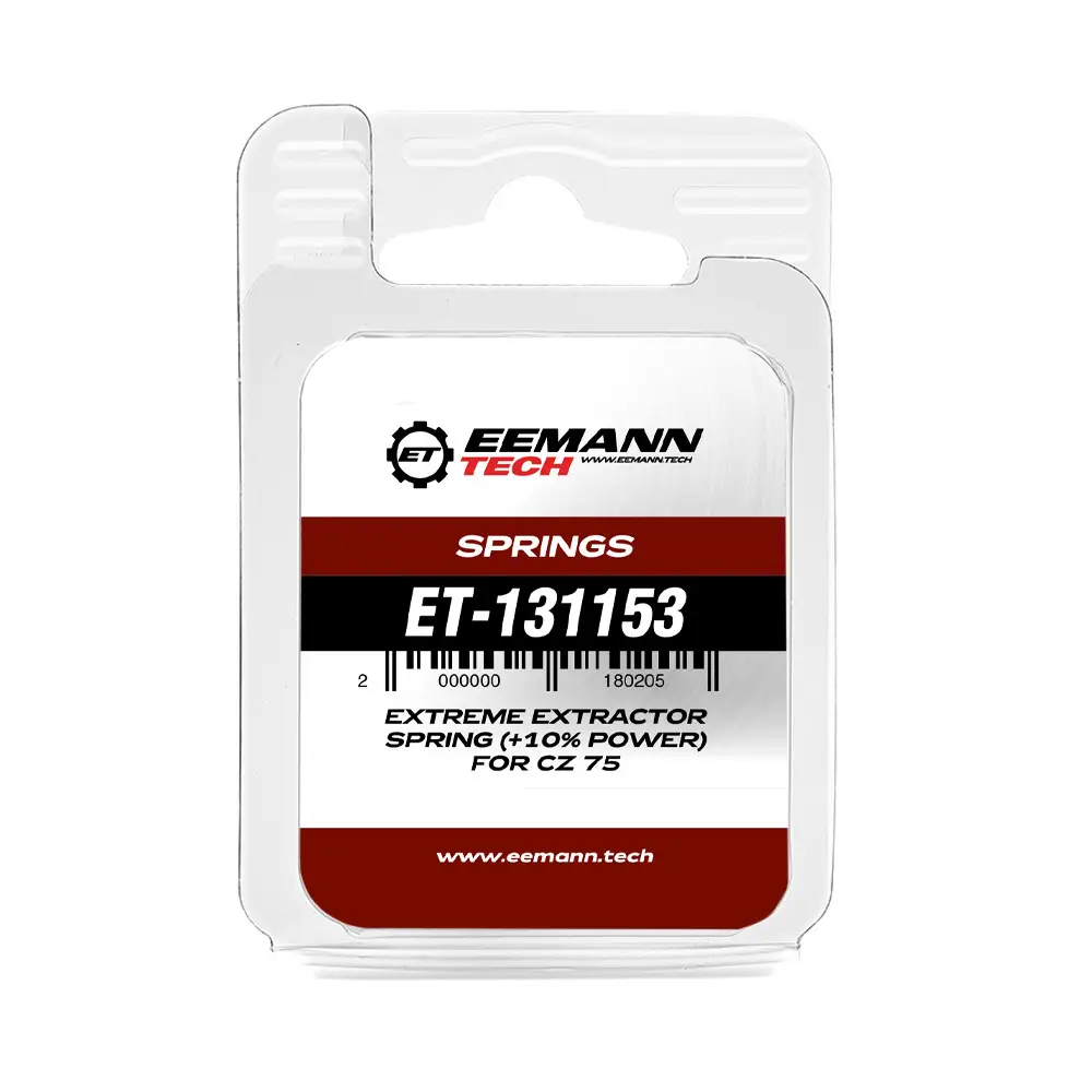 Eemann Tech Extreme Extractor Spring (+10% power) er udviklet til at forbedre pålideligheden i CZ 75-platformen, herunder Shadow, SP-01, Tactical, Shadow 2, TS og TS 2. Fjederen er ca. 10 % kraftigere end standard og giver mere stabil udtrækning af hylstre, hvilket mindsker risikoen for svigt ved hård konkurrencebrug eller intensiv træning.