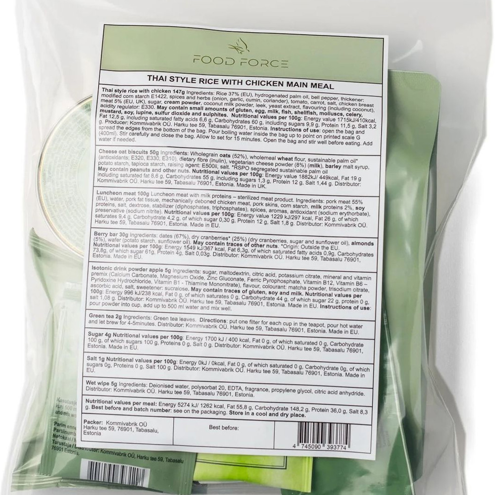 Food Force Thai Style Rice with Chicken Main Meal er en fuld måltidspakke sammensat til at give optimal energi og næring under krævende forhold.