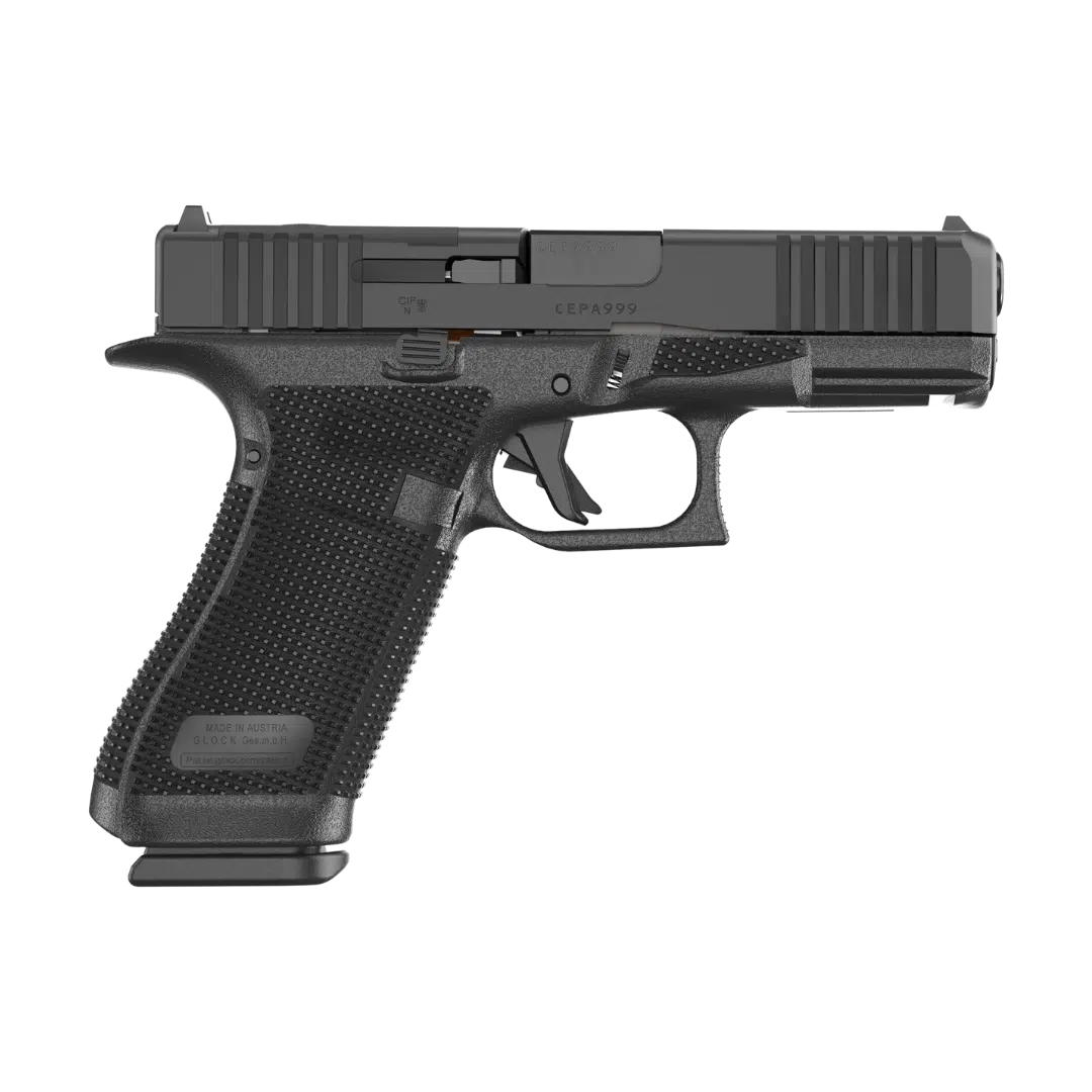 Glock 45 Gen5 er bygget som en hybrid mellem en kompakt og en full-size pistol. Du får det korte slide for bedre håndtering og hurtigere præsentation, kombineret med et fuldt greb, der giver maksimal kontrol og magasinkapacitet.