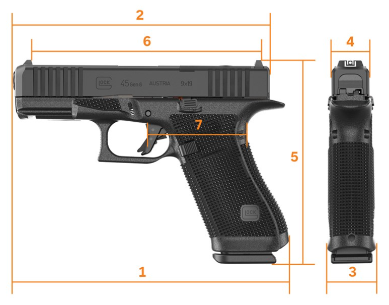 Fraværet af finger grooves gør grebet mere universelt, og den let udvidede magwell hjælper med hurtigere reloads. Samlet set er G45 en alsidig platform, der fungerer lige godt til duty, træning og taktisk brug.