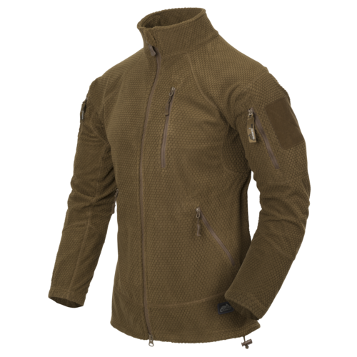 Alpha Tactical Fleece er designet til brugere, der har behov for et let, alsidigt isoleringslag med høj bevægelsesfrihed. Jakken er fremstillet i grid fleece med en gramvægt på 310 g/m², som kombinerer effektiv varmeisolering med god fugttransport. Materialets struktur hjælper med at lede overskudsvarme og fugt væk fra kroppen, hvilket gør jakken velegnet til varierende aktivitetsniveau.