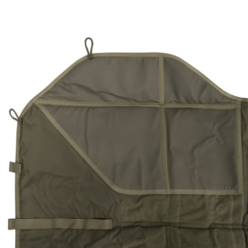 Backblast Mat er et funktionelt skydeunderlag til skydning på bane og i felten. Underlaget er fremstillet i slidstærkt Cordura-stof med indlæg af isolerende skum, hvilket giver komfort ved lange liggende sessioner og beskytter mod kulde og ujævnt underlag. Antiskrid-paneler under albuer og knæ sikre stabil position, mens en hook & loop-flade gør det muligt at fastgøre VIS-lommer og andre organisatoriske inserts til ammunition, måleborde eller småværktøj.