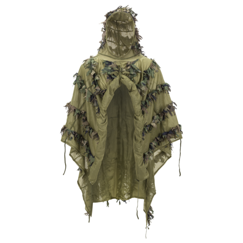 Let og effektiv poncho til sløring i skov og bevokset terræn. Udviklet til at bryde menneskets konturer visuelt og reducere genkendelighed – kan bæres over uniform, udstyr og rygsæk.