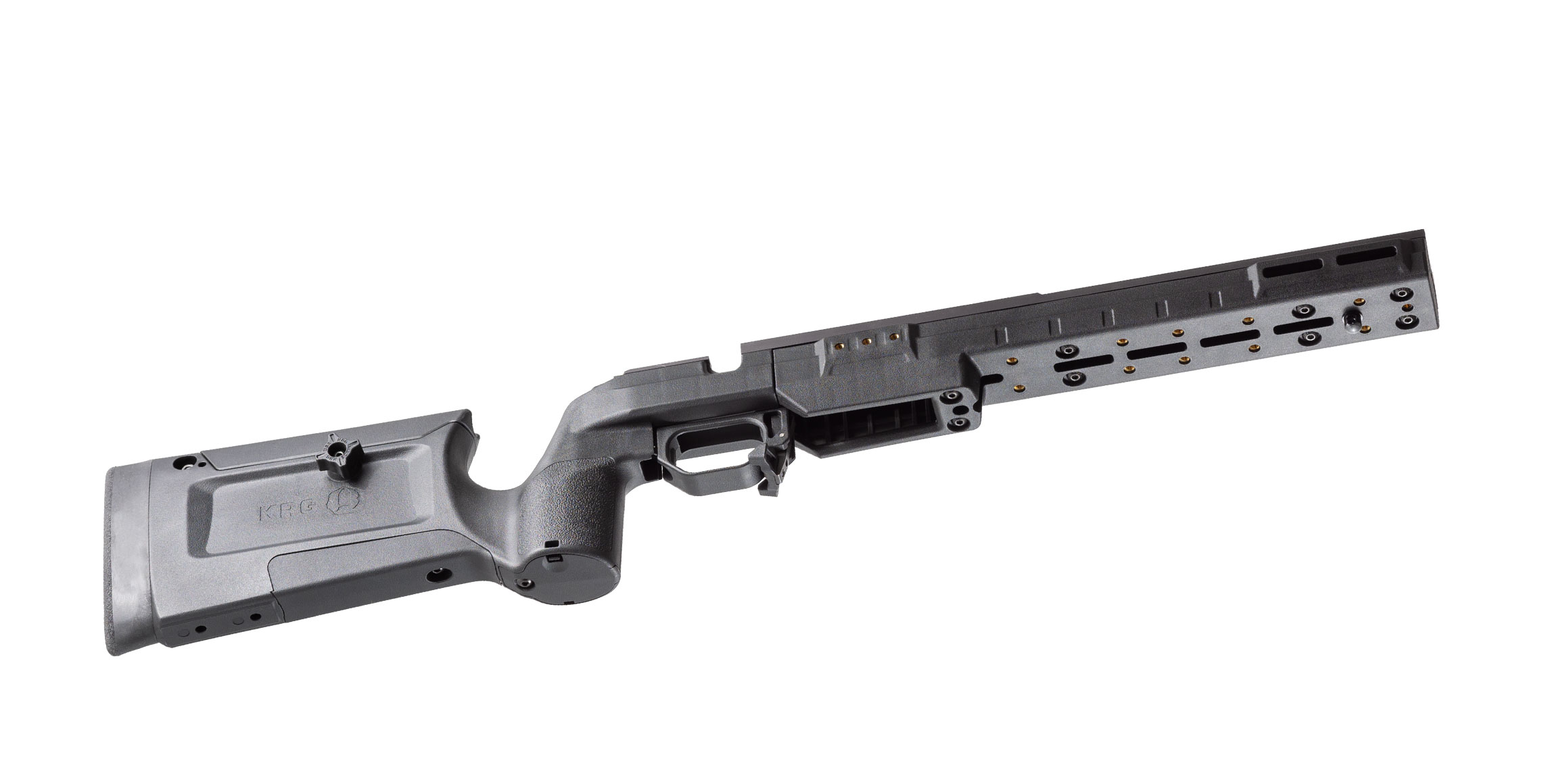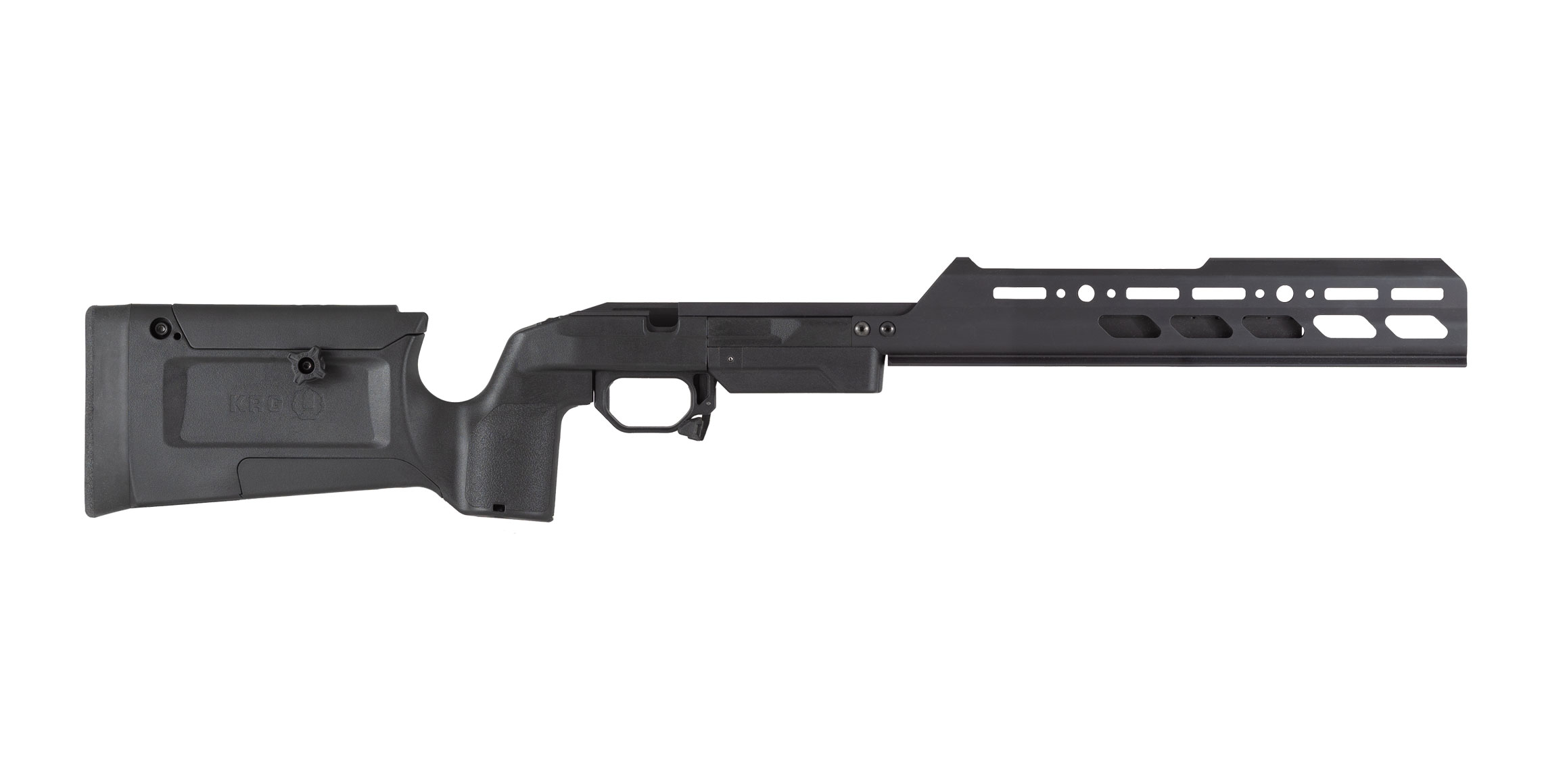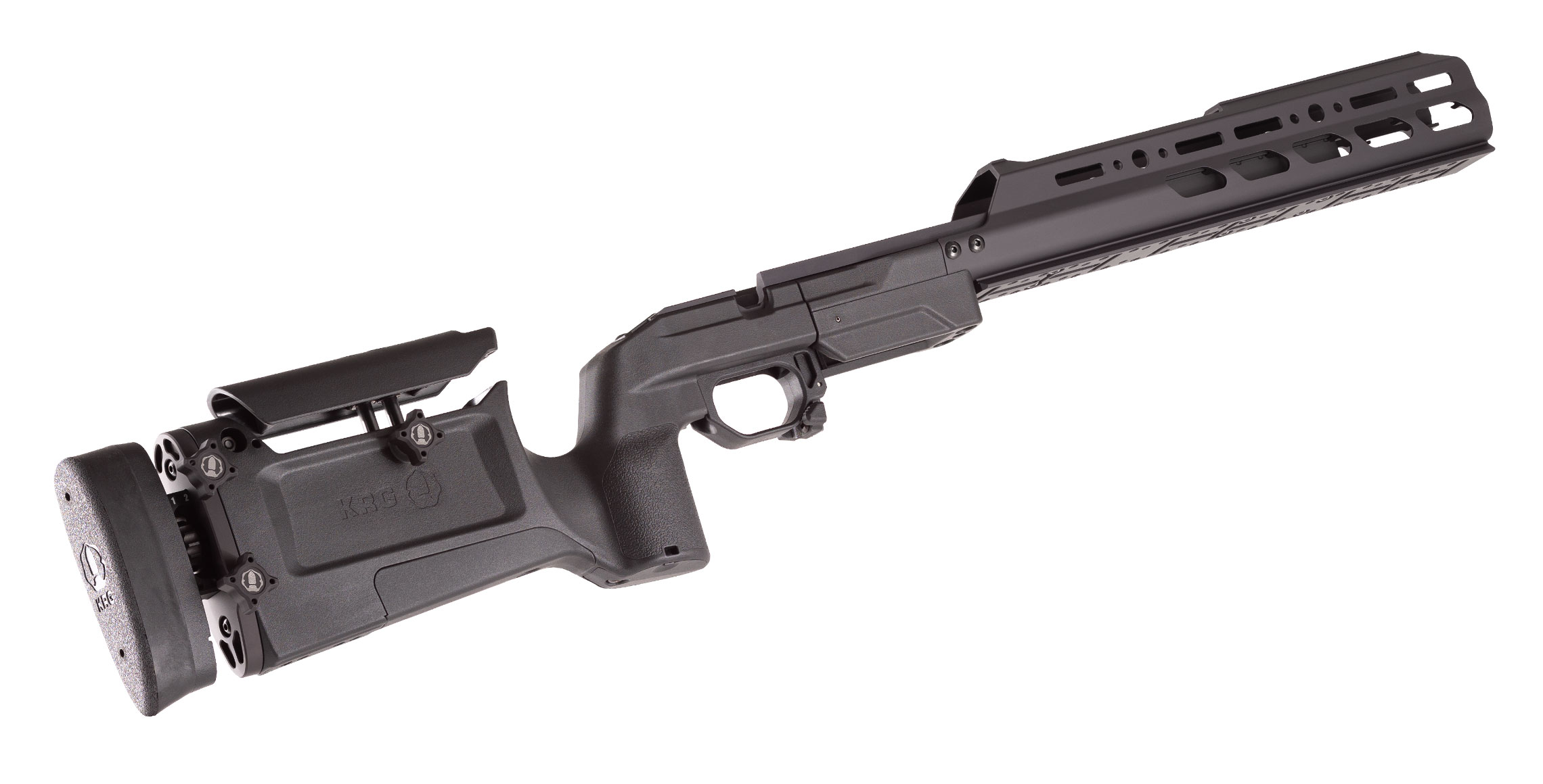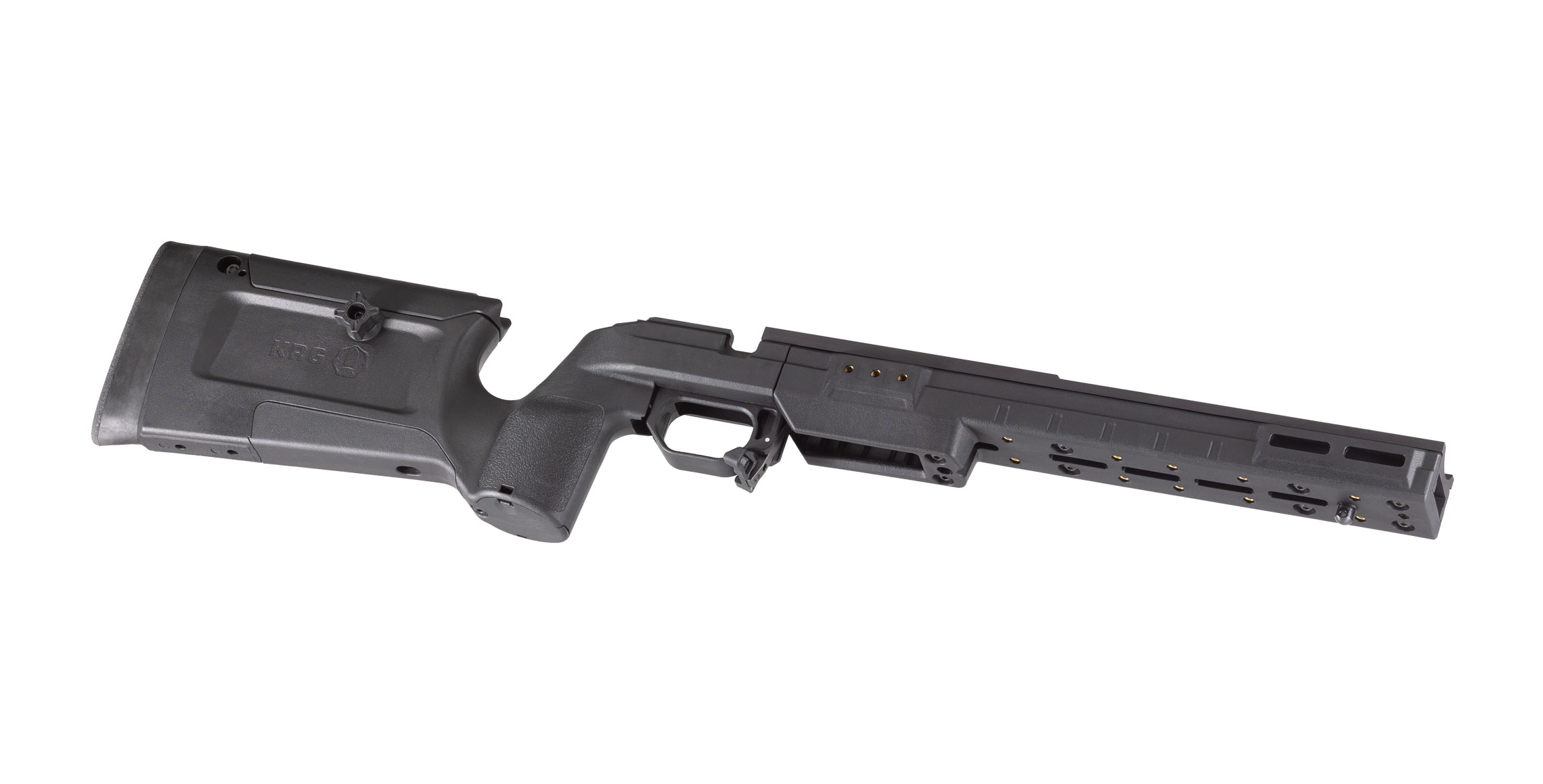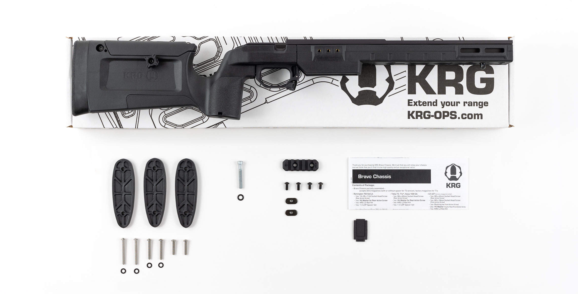 Chassiset er kompatibelt med AICS-magasiner (med få undtagelser afhængig af inlet), hvilket gør det fleksibelt på tværs af kalibre og platforme. Samtidig er det kompatibelt med KRG’s øvrige systemer, så bagender og tilbehør kan udskiftes efter behov.