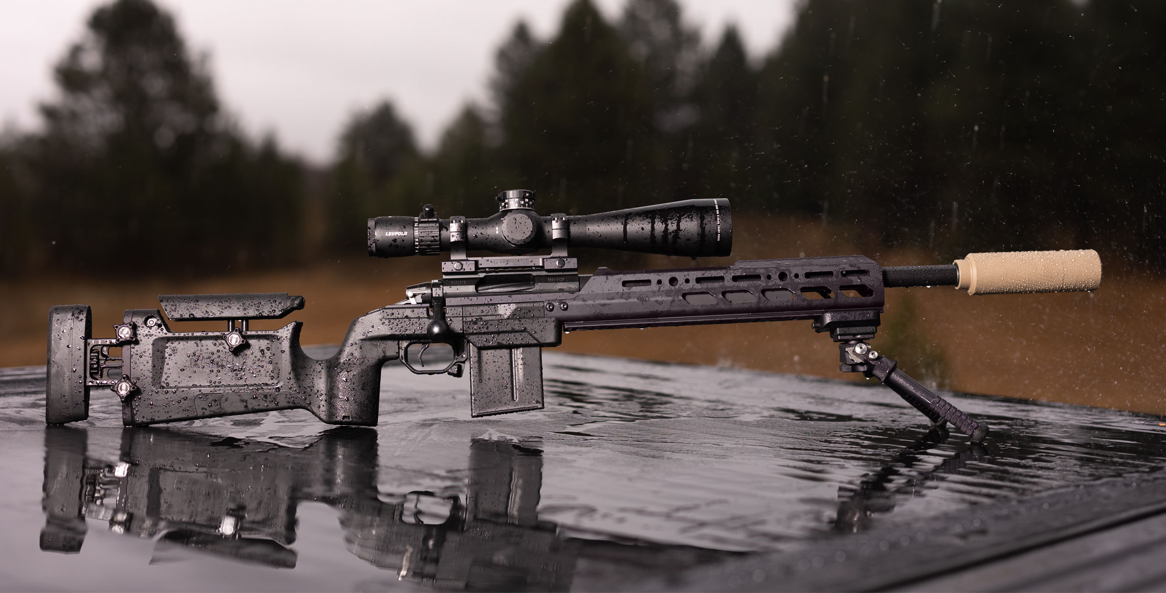 Forenden er udført i polymer for at reducere vægt og eliminere varme-/kuldeoverførsel til hånden. Den er udstyret med M-LOK slots og flere monteringspunkter, hvilket gør det nemt at tilføje rails, bipod, tripod mounts eller andet tilbehør. Der er desuden adgang til action-skruen uden at afmontere forenden.
