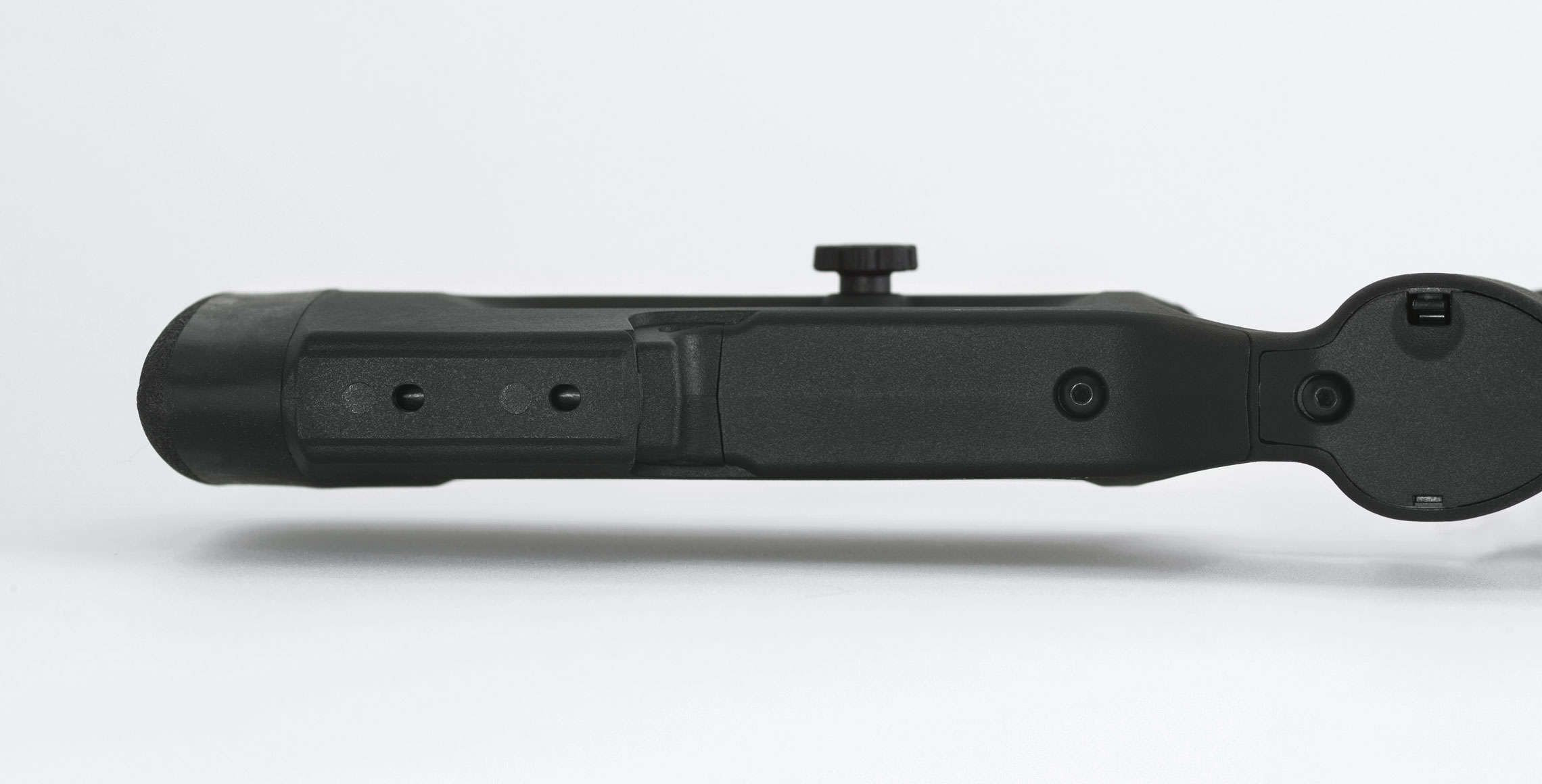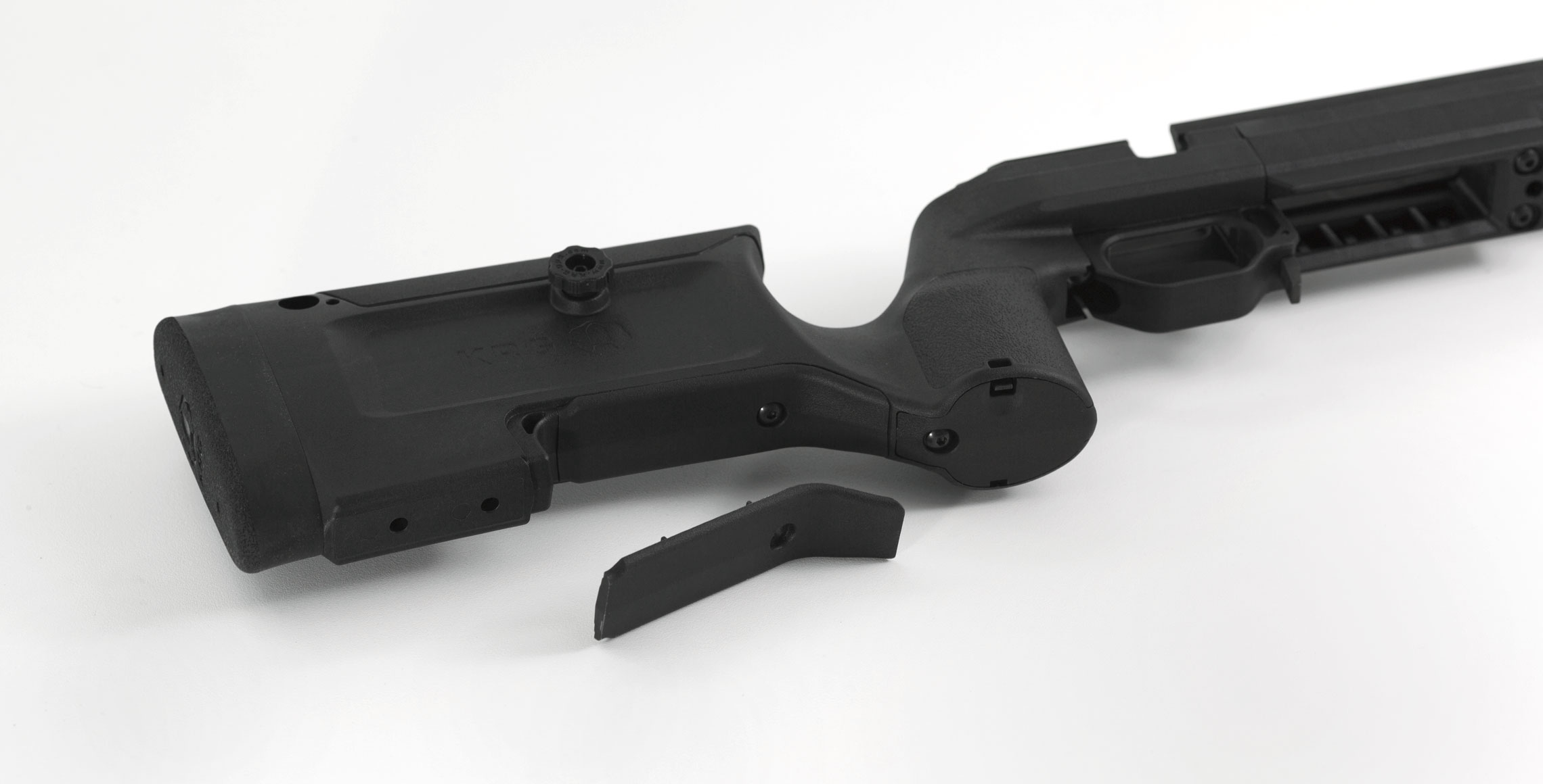 Den erstatter den standard vinklede bund på Bravo-chassiset og lukker åbningen med en hook-konfiguration, som giver bedre greb mod bagsække eller hånd. Det betyder mere stabilitet og bedre kontrol, især ved præcisionsskydning.