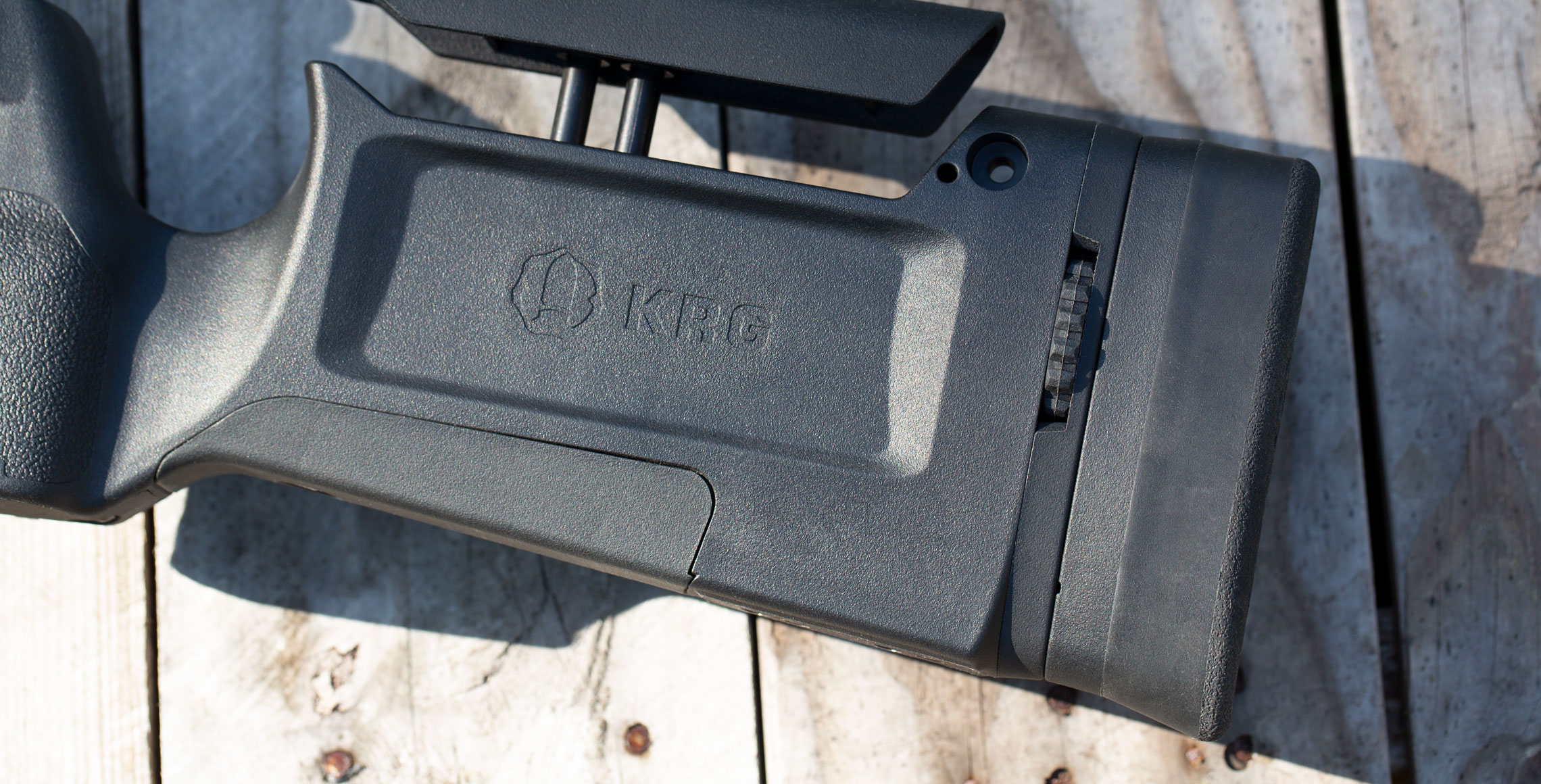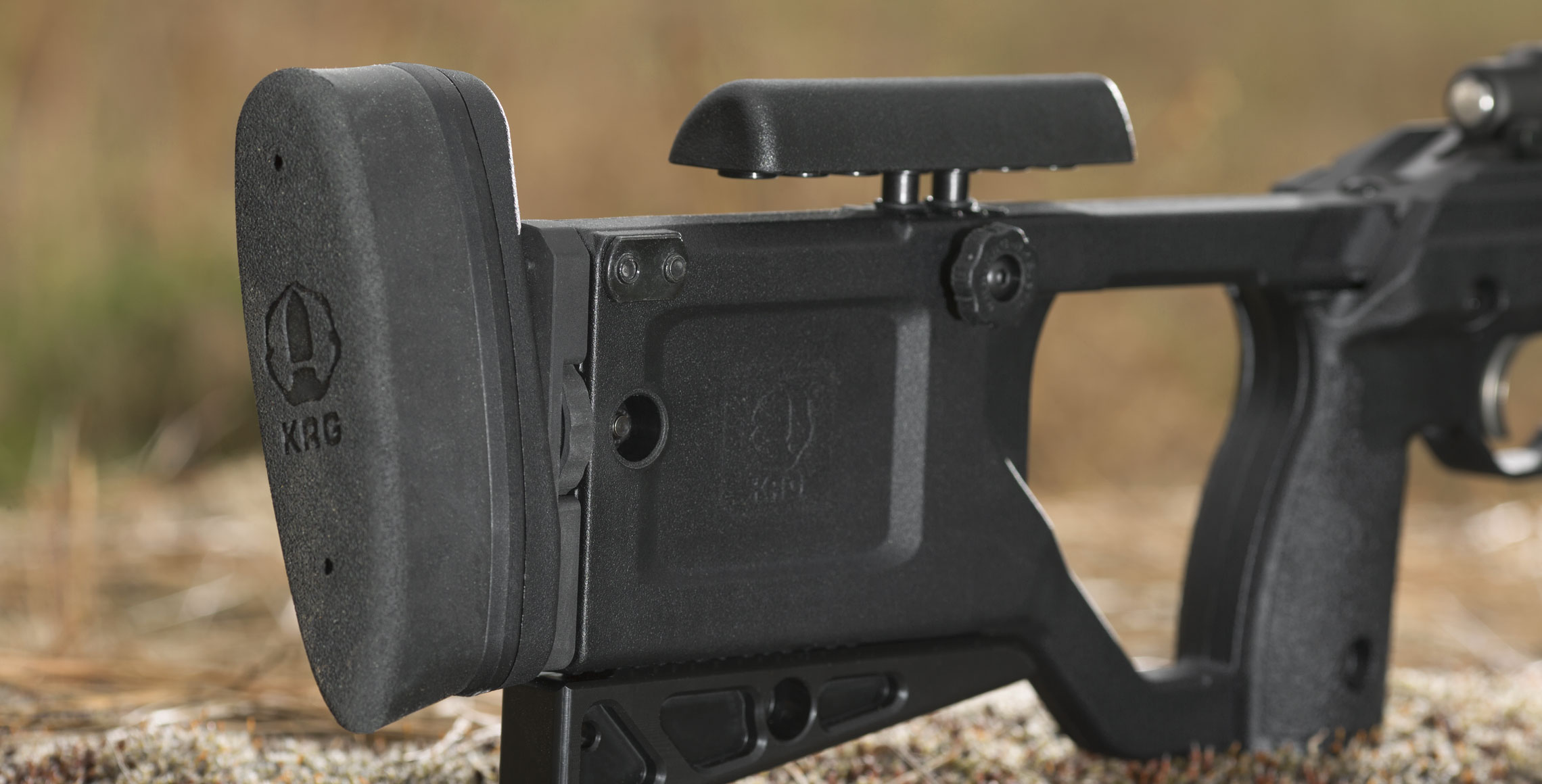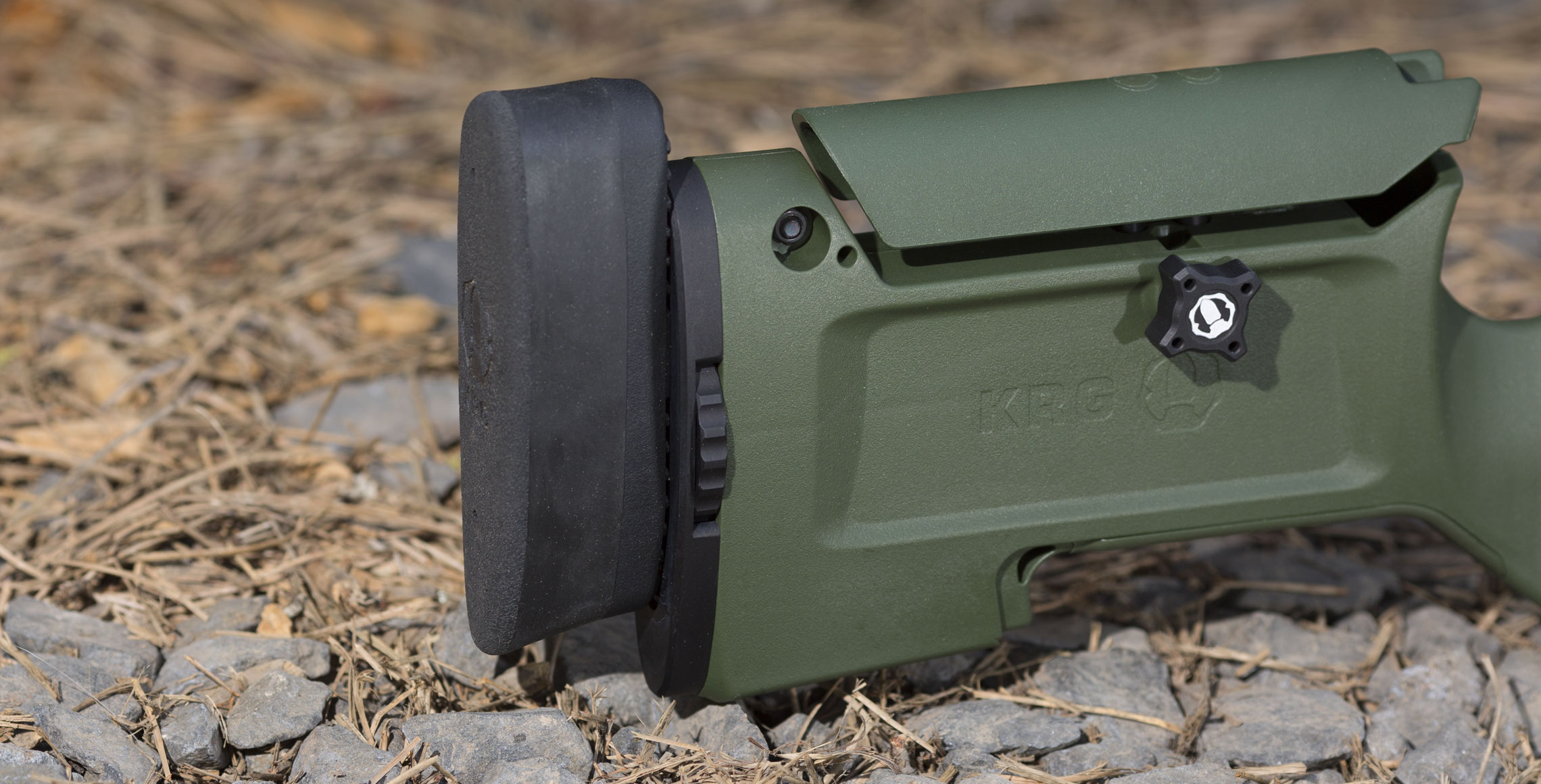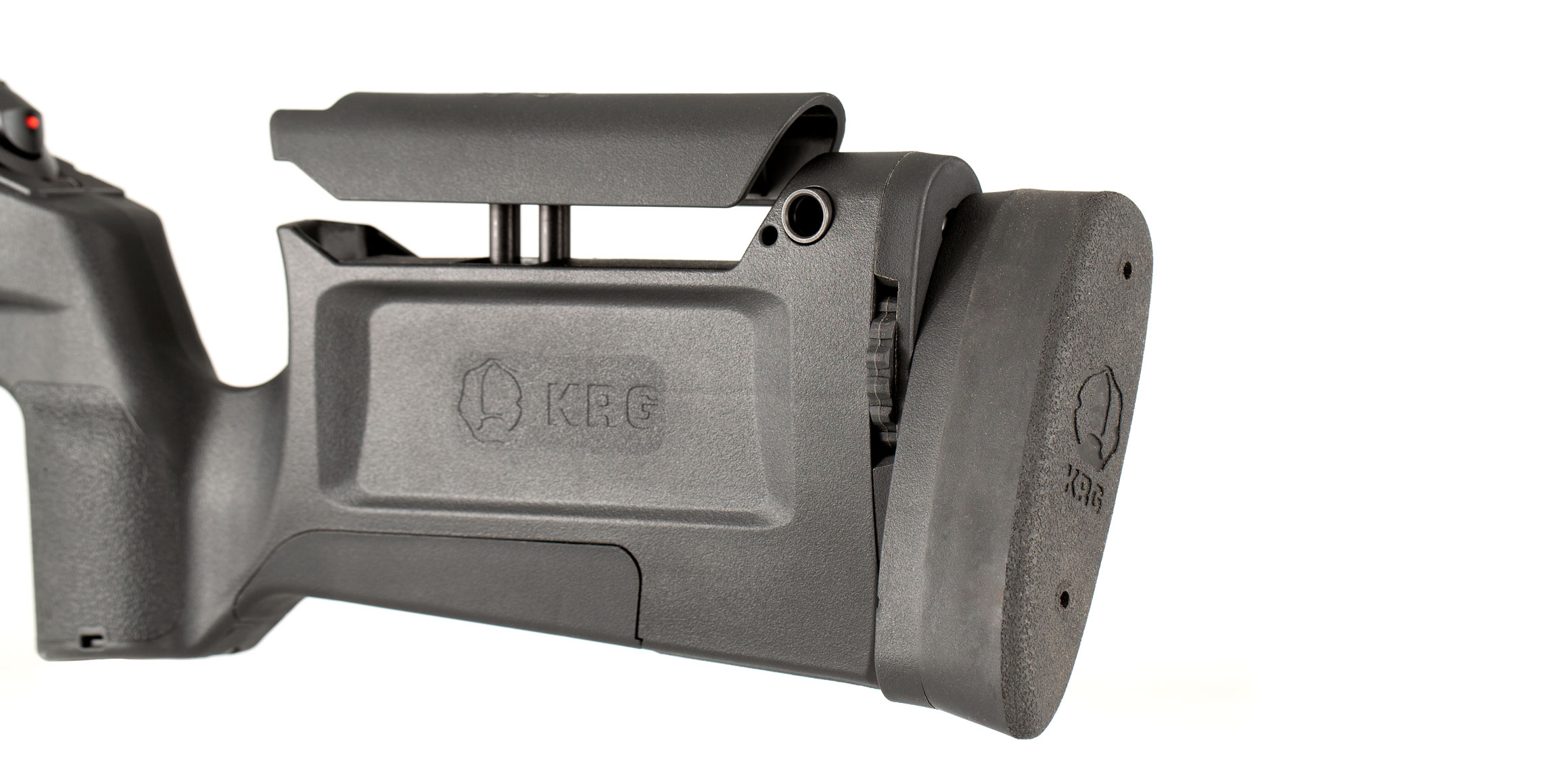 KRG Tool-less Buttpad Height Mechanism giver dig hurtig og værktøjsfri justering af kolbens højde og vinkel - for bedre komfort og kontrol i alle skydestillinger.