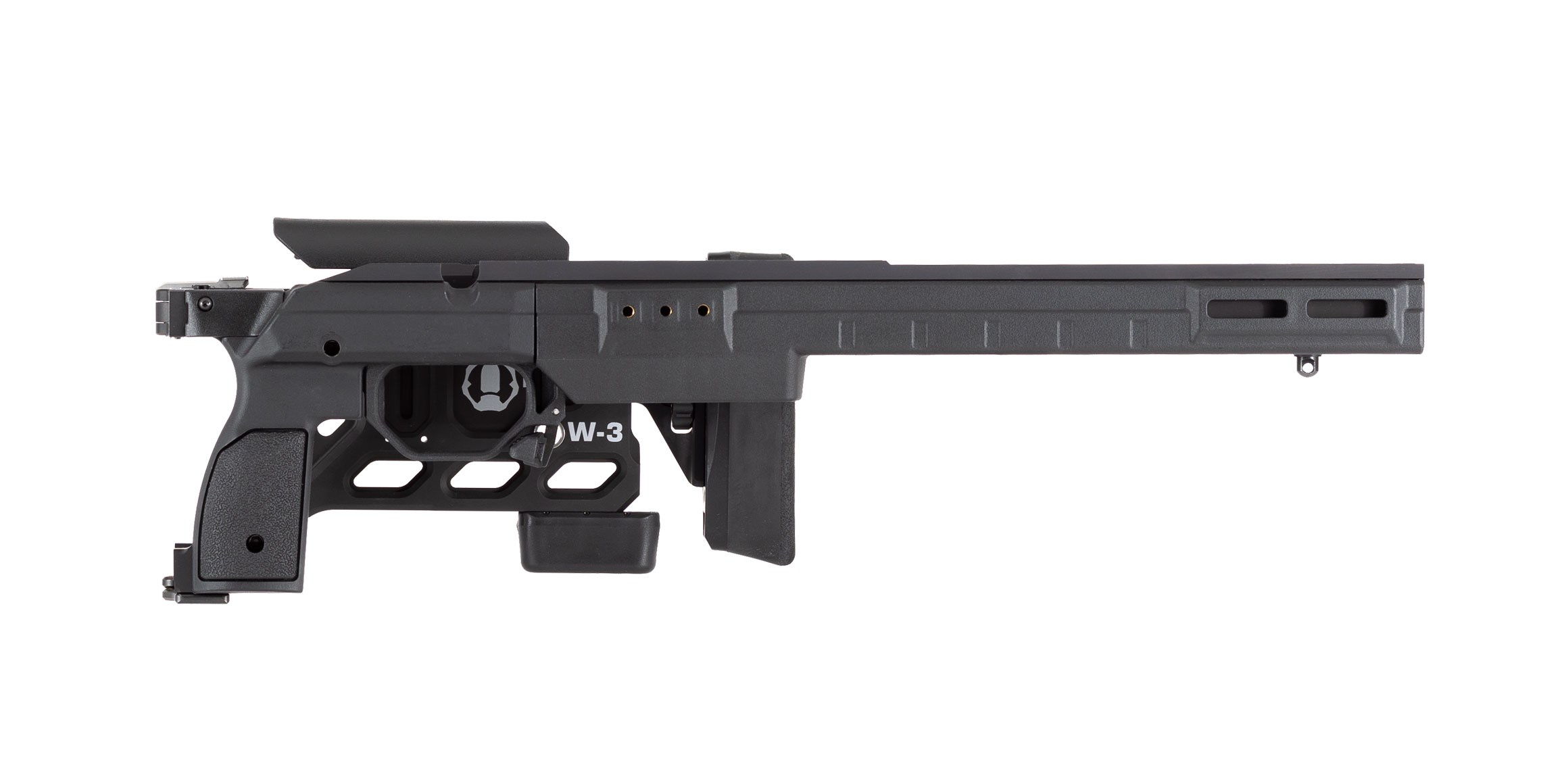 Kinetic Research Group Whiskey-3 Gen 7 er et premium riffelchassis i aluminium, der kombinerer lav vægt, høj modularitet og avanceret ergonomi – udviklet til præcisionsskydning på højt niveau.