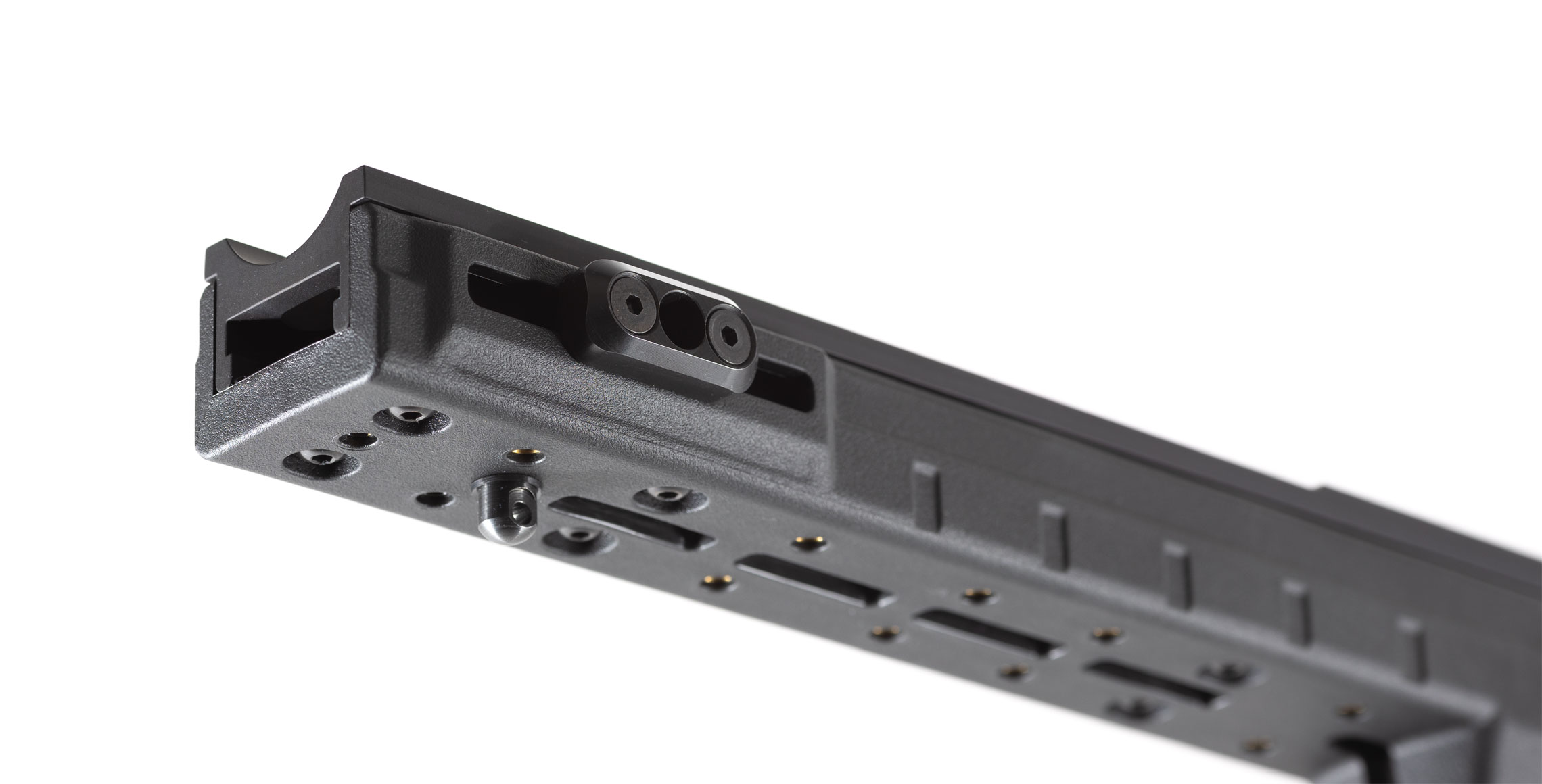 Kernen i systemet er en CNC-fræset aluminium “backbone” med integreret radius bedding, som sikrer ensartet og stabil kontakt mellem lås og chassis. Det giver et solidt fundament for præcision – uden behov for traditionel bedding.
