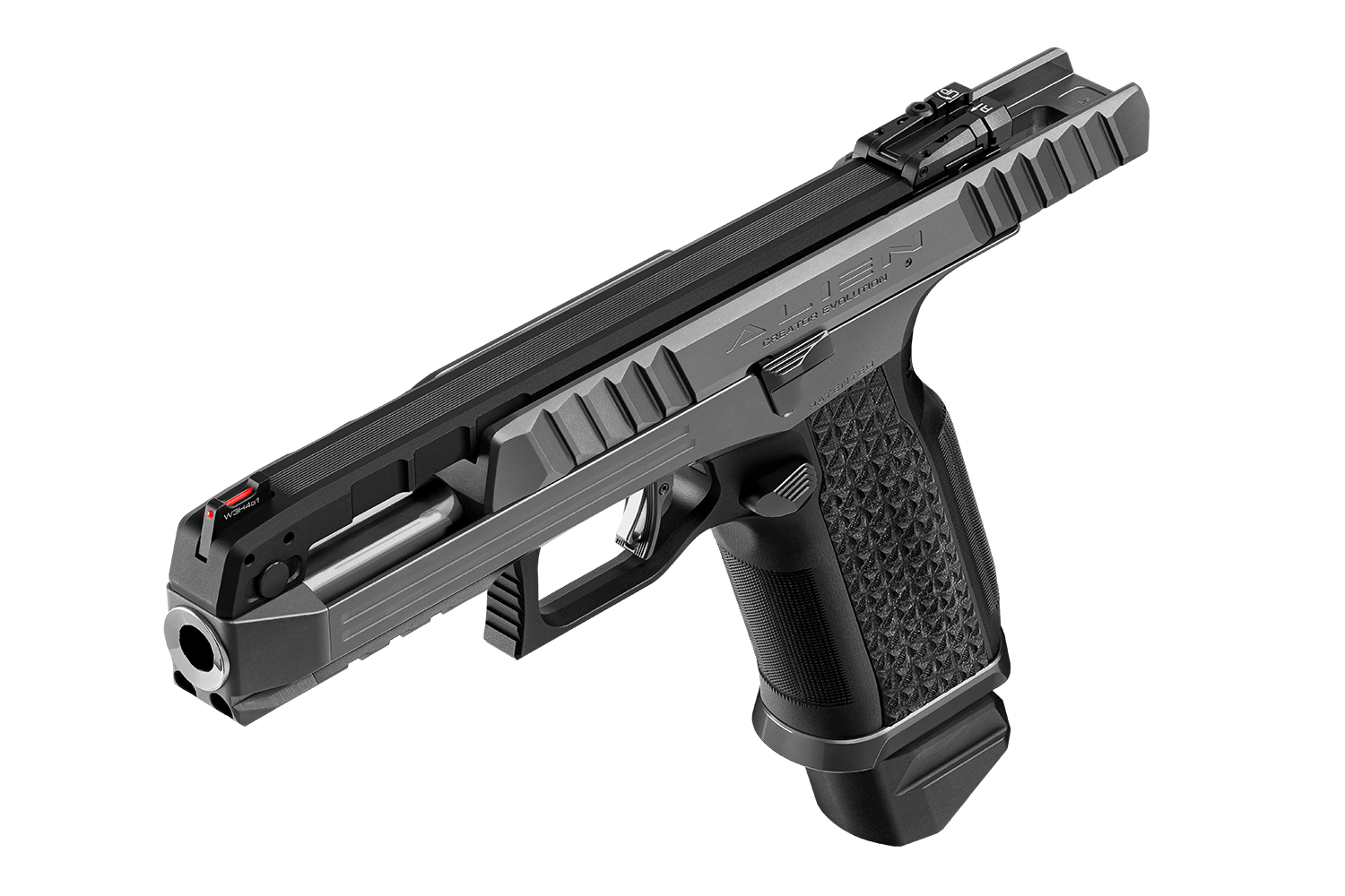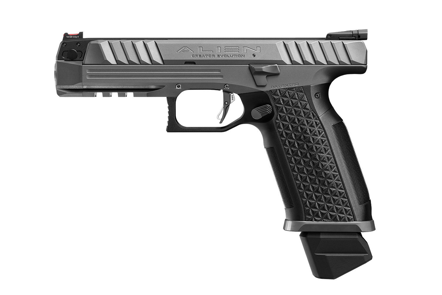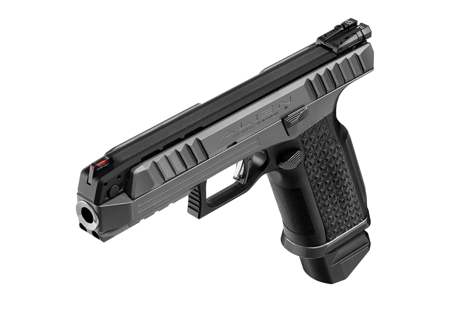 Den nye 1911-inspirerede grebvinkel giver et mere traditionelt point-of-aim og føles naturligt for skytter, der kommer fra klassiske stålrammeplatforme. Det modulære grebdesign gør det muligt at justere pistolens greb på alle fire sider ved blot én skrue – en løsning, der adskiller Creator-modellen markant fra både tidligere Alien-varianter og konkurrerende pistoler.