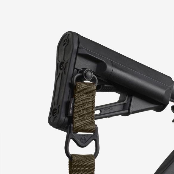 Adapteren er konstrueret med Magpuls slidstærke proprietære nylonbånd og inkluderer en melonite-behandlet stål QD drejeclips, som giver sikker og hurtig til- og frakobling til kompatible QD-slyngemonteringspunkter. Sammen med en Magpul Paraclip (sælges separat eller inkluderet i MS3/3-Gen slyngen) muliggør den et gnidningsløst skift mellem 2- og 1-punkts konfigurationer – ideelt til taktiske situationer og dynamiske skydekonkurrencer som IPSC og 3-Gun. Den fungerer perfekt sammen med MS1 Slyngen og er et vigtigt tilbehør for brugere, der kræver både fleksibilitet og hurtig tilpasning i feltet.