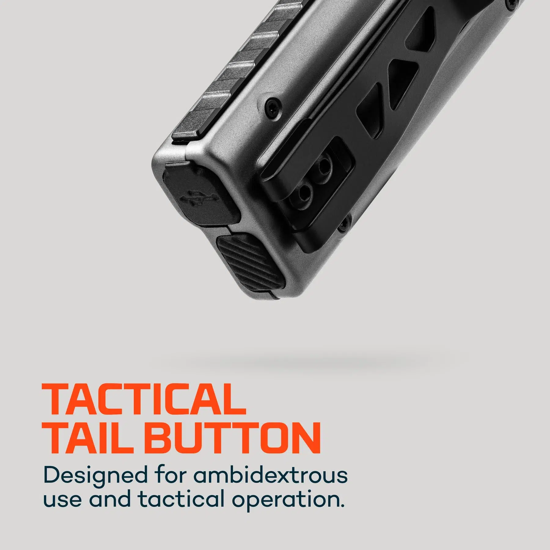 Med NEBO’s Smart Power Control™ optimeres batteritiden, og Direct-to-Low funktionen gør det muligt at tænde direkte på lavt lysniveau — ideelt i taktiske eller skjulte situationer.