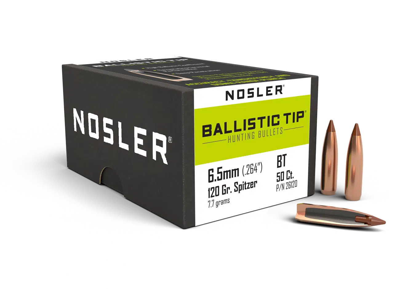 Nosler 6.5 mm 120 gr Ballistic Tip Hunting er et jagtprojektil udviklet til præcision, kontrolleret ekspansion og effektiv virkning på medium vildt.