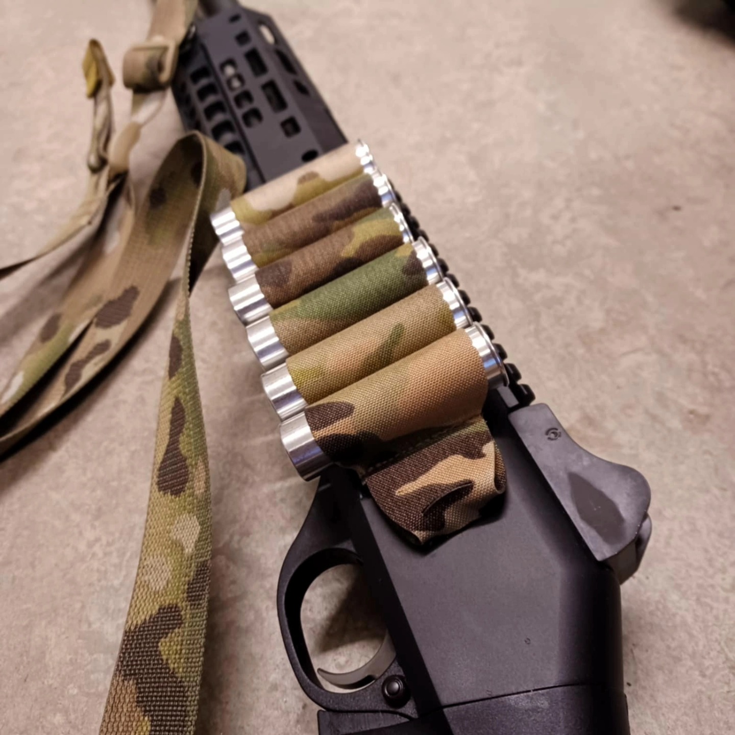 Fås i Sort, Ranger Green og Multicam, så den let kan integreres i eksisterende udrustning. Derudover kan der tilkøbes et Shotgun MOLLE Panel – et velcro-panel med MOLLE-fæste, som kan monteres på eksempelvis vesten for endnu større fleksibilitet.