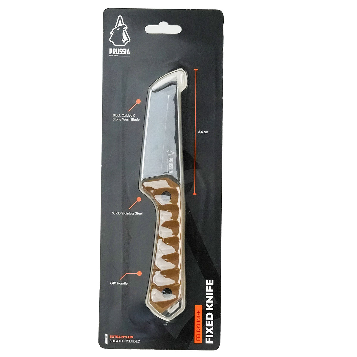 Klingen er fremstillet i 3Cr13 rustfrit stål, som giver en god balance mellem skarphed, holdbarhed og nem vedligeholdelse. Overfladen er behandlet med sort oxide og stonewash finish, hvilket både øger slidstyrken og giver et diskret, taktisk udtryk.