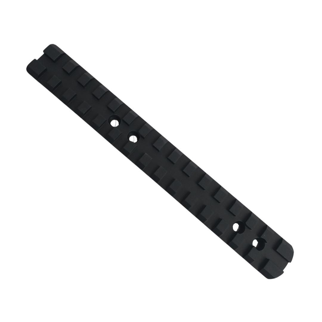 Skinnen er udført efter mil-spec Picatinny-standard og passer derfor til et bredt udvalg af moderne optikmontager og tilbehør. Bemærk dog, at Weaver-spec ringe og mounts ikke nødvendigvis er kompatible.