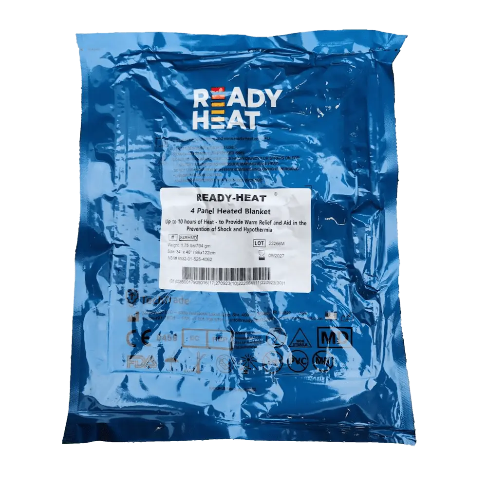 Ready-Heat 4 Panel er “temperaturstyring der virker”, når du ikke har tid, strøm eller varmeapparater. Du åbner posen, folder ud, og varmepanelerne reagerer med ilt i luften. Det giver en kontrolleret varmeprofil, som er lavet til at støtte præhospital behandling af hypotermi og shock.