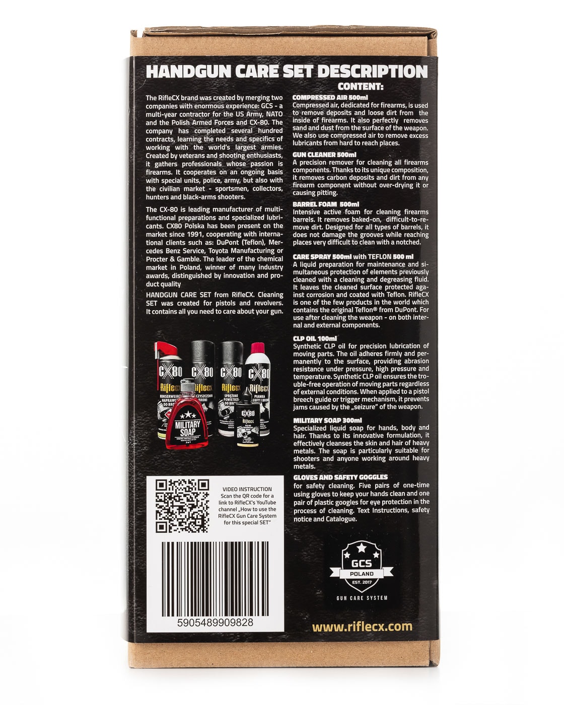 RifleCX Handgun Care Set er udviklet til brugere, der ønsker et samlet og systematisk setup til pistolvedligeholdelse. Sættet indeholder alle nødvendige produkter til effektiv rens af pibe, mekanisme og øvrige komponenter samt efterfølgende smøring og beskyttelse.