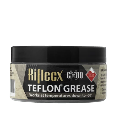 RifleCX Teflon Grease anvendes som fast smøremiddel på udvalgte dele af skydevåben, hvor almindelig olie ikke er tilstrækkelig. Smøremidlet reducerer friktion og slid, beskytter metaloverflader mod korrosion og mindsker opbygning af carbon og andre aflejringer.