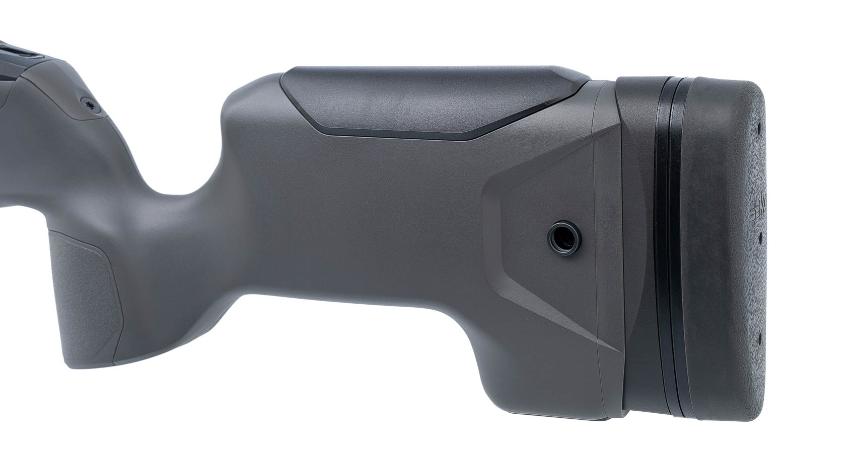 Stocken er modulær og fuldt justerbar — med justerbar kindpude og mulighed for at tilpasse længden til skytter med forskellig højde og skudstilling. Det giver komfort og stabilitet, især ved lange skud eller lange sessioner.