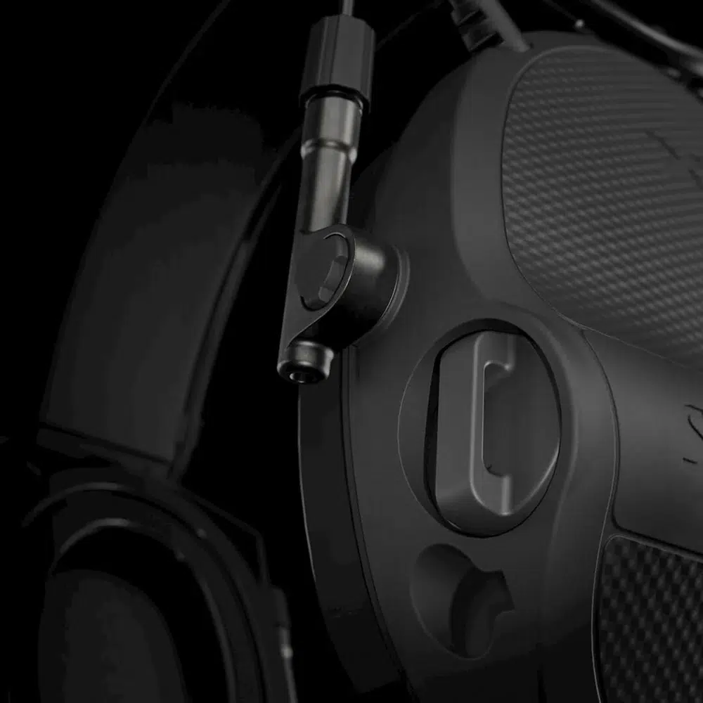 Skift mellem konfigurationer sker via et simpelt bayonet-fæste, som gør det muligt at udskifte suspension (headband/neckband/helmet adapters) uden specialværktøj. Du kan reelt tage de ekstra komponenter med i tasken og omkonfigurere headsettet på stedet – før træning, øvelse eller deployment. Det er ikke kosmetisk modularitet, men funktionel fleksibilitet.