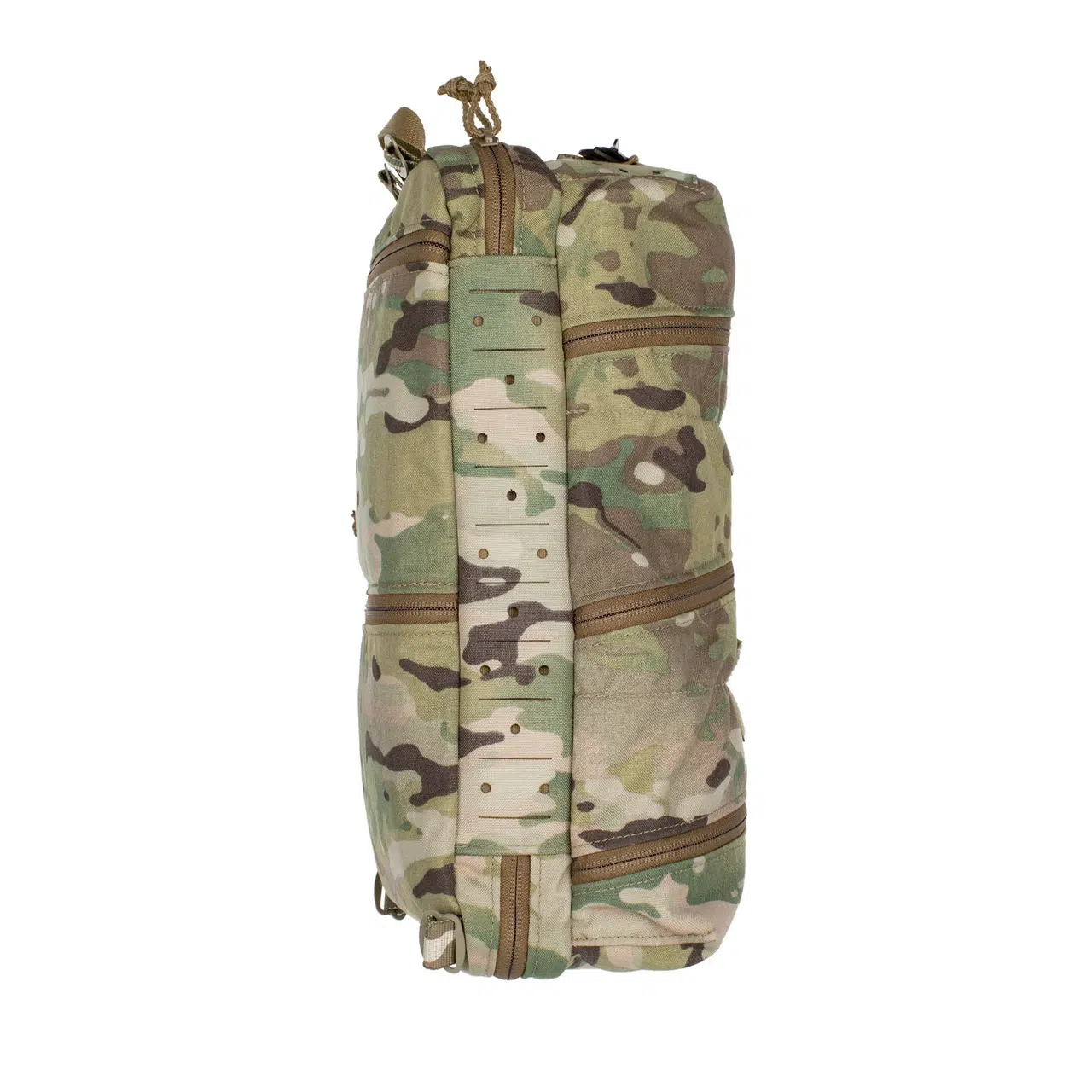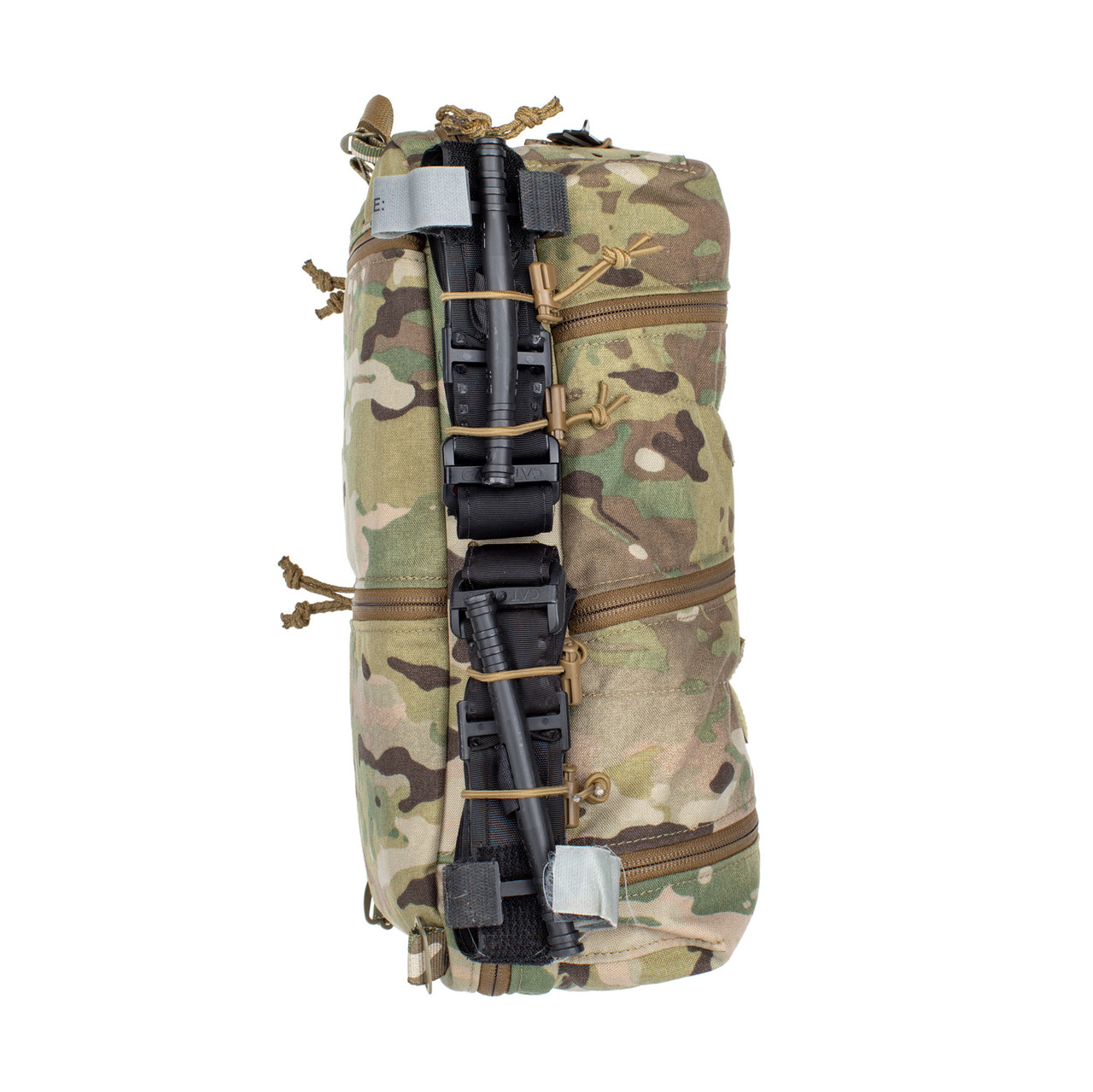 Tasken er designet til at bæres over en plate carrier og fungerer som en kompakt medic løsning med høj kapacitet i forhold til størrelsen. Fronten er opdelt i tre ens rum med diagonale lynlåse, som giver hurtig adgang til hele indholdet – uden at du skal flytte rundt på udstyret.