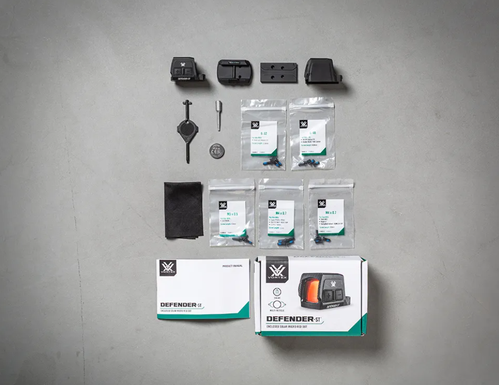 Defender-ST Enclosed Solar Micro er skabt til brugere, der kræver et sigte der bliver ved med at virke, uanset miljø. Det fuldt lukkede hus i 7075 aluminium beskytter emitter og elektronik mod stød, vand og snavs, mens solcellen med Auto D-TEC skifter intelligent mellem sol- og batteridrift for ekstremt lang driftstid. Multiretiklet giver tre forskellige sigtevalg (herunder 3 MOA prik og 32 MOA cirkel) og 12 lysstyrkeniveauer (10 dagslys, 2 natkikkert-kompatible), så sigtet hurtigt kan tilpasses forskellige lys- og opgaveforhold. Den asfæriske linse sikrer et forvrængningsfrit sigtebillede, og den store sigtelinje hjælper med hurtig måloptagelse. Praktiske detaljer som sideindstik til CR2032-batteri, Fast-Rack tekstur for let håndtering af slæde, knappelås for at undgå utilsigtede ændringer og bevægelsesaktivering med 10 minutters auto-sluk gør Defender-ST velegnet til alt fra selvforsvar og praktisk træning til tjenestebrug. Monteringsfootprint følger DeltaPoint Pro-standarden for bred kompatibilitet.