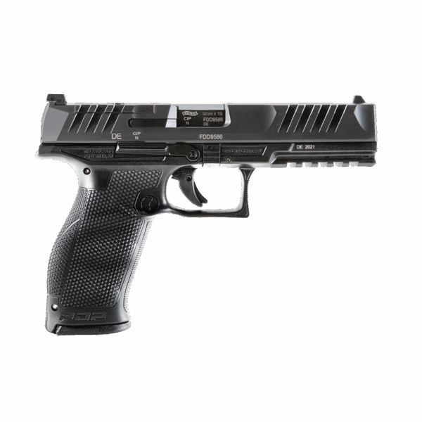 Model: Walther PDP FS (Full Size) — 5″ slæde, full-size greb til 18-skuds magasin.